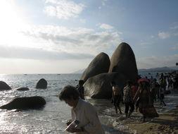公园内,有一座名为“天涯石”的巨石,上面刻着“海角天涯”四个大字。相传,这是古代文人墨客留下的墨宝,寓意着这里是我国最南端的地方。我站在石前,仿佛能感受到那些文人墨客的豪情壮志。